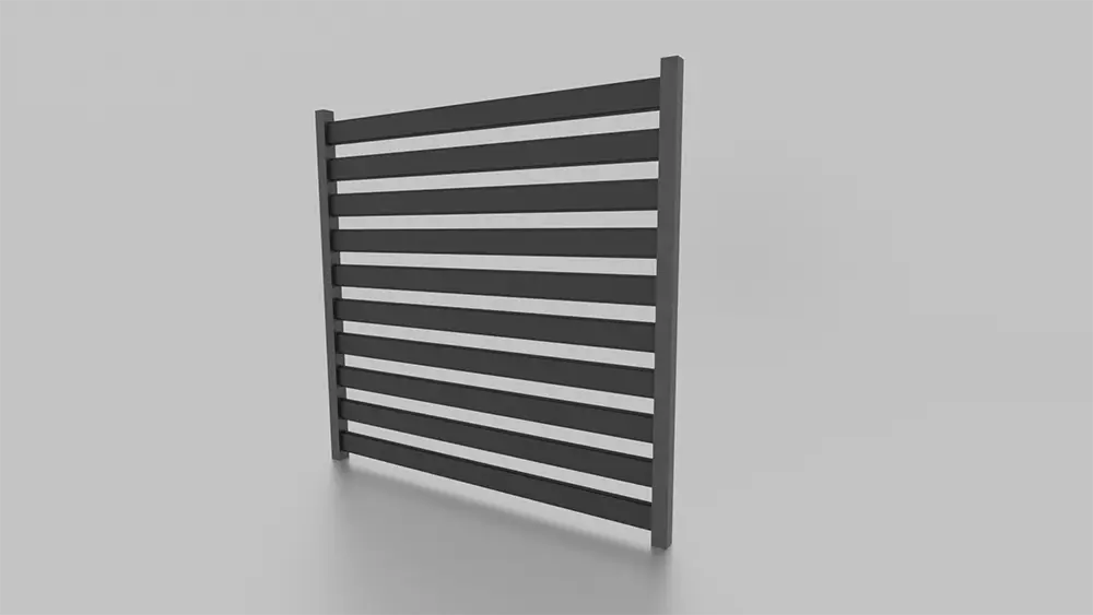 Panel produkowany na bazie stalowego, giętego profilu. Szerokie lamele (10 cm) zapewniają niewielkie prześwity oraz kontakt wzrokowy z otoczeniem.